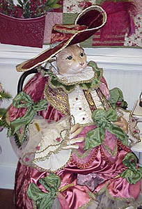 I, Angelique, will now conclude our story... Oh, yes, I know we have changed. I see it in Antoine's paunch, his gait is not as swift, his health is on the decline, and he has lost some whiskers. Being so much younger, I've fared better, yet I know I have an extra chin, my fur is not as glossy, and my cleavage must be propped up. A litter together is now out of the question, and we don't dance as we once did. But the important thing is that we are together again, forever more. All the youngsters in the Victorian Parlour Cat family see us as a bit foolish, reveling unabashedly in each other's company, holding paws in public, and dressing in quiet flamboyant attire. Ah, but they are young, and have not yet experienced the heartache of love lost, nor the triumph of love reclaimed. |